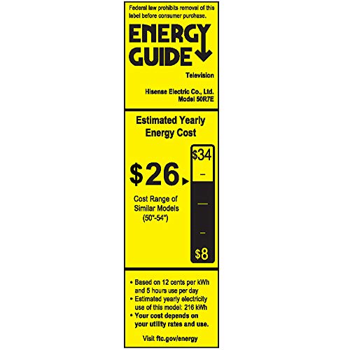 Details: A better TV. A better value. The R7E series 4k UHD smart Hisense Roku TV is perfect for presenting your favorite entertainment in a completely new way. With a 4K ultra high definition picture, HDR-compatible technology that boosts color and contrast, and motion rate 120 technology that makes it easier to follow fast action, the R7 doesn’t just display your favorite movies, shows and games—it transforms them. The power consumption is 450 watts while in standby mode it is less than 0.5 watts.