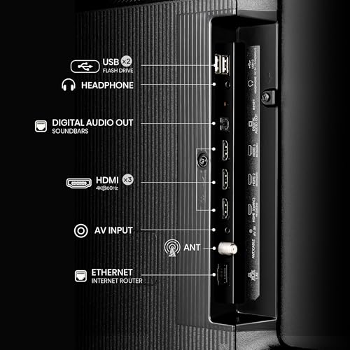 Dimensions: 53.0 x 34.0 x 5.0 inches. Includes power cable and 1-year manufacturer’s warranty. Perfect for gamers, sports fans, and home theater enthusiasts seeking vivid color and immersive sound.