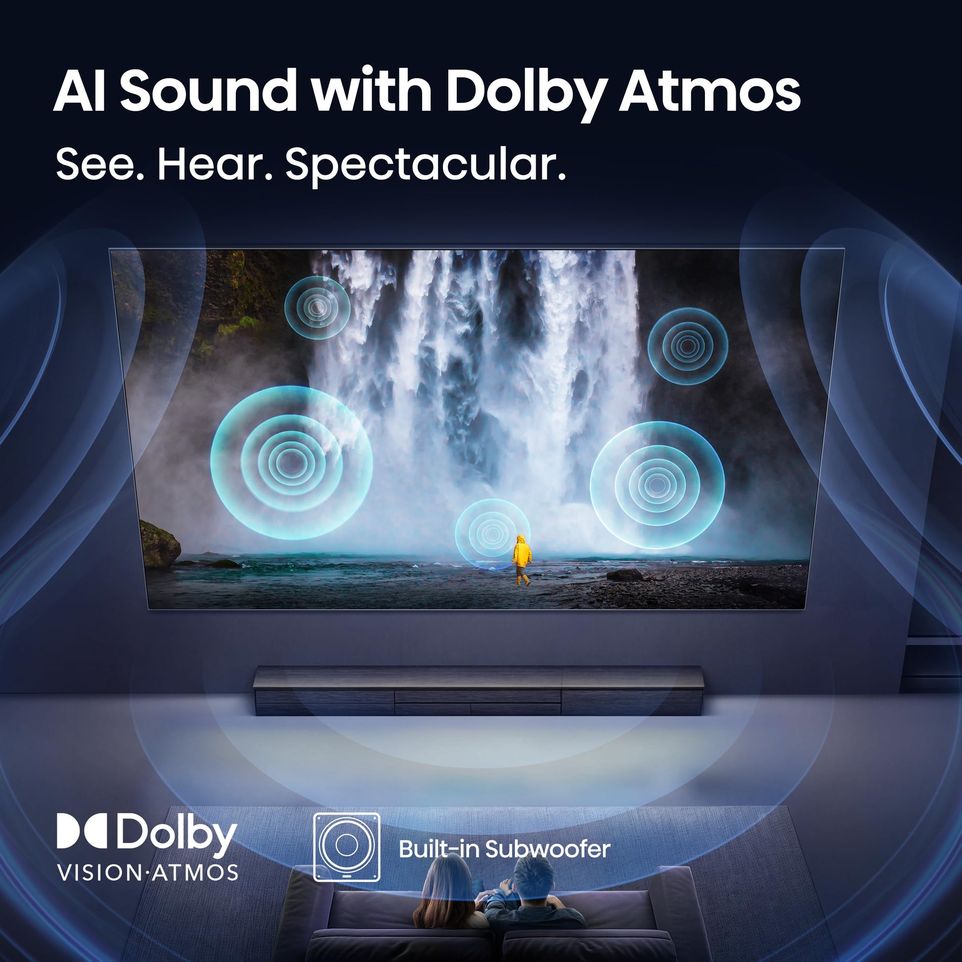 - DOLBY VISION ATMOS & BUILT-IN SUBWOOFER: Never miss a minute of the action–from your couch. Dolby Atmos, the next evolution of surround sound, creates a moving and immersive audio experience, for every call of the ref and cheer of the fans. And Dolby Vision, with more flare and more depth, enhancing the detail of the picture, down to each shadow cast on the field
