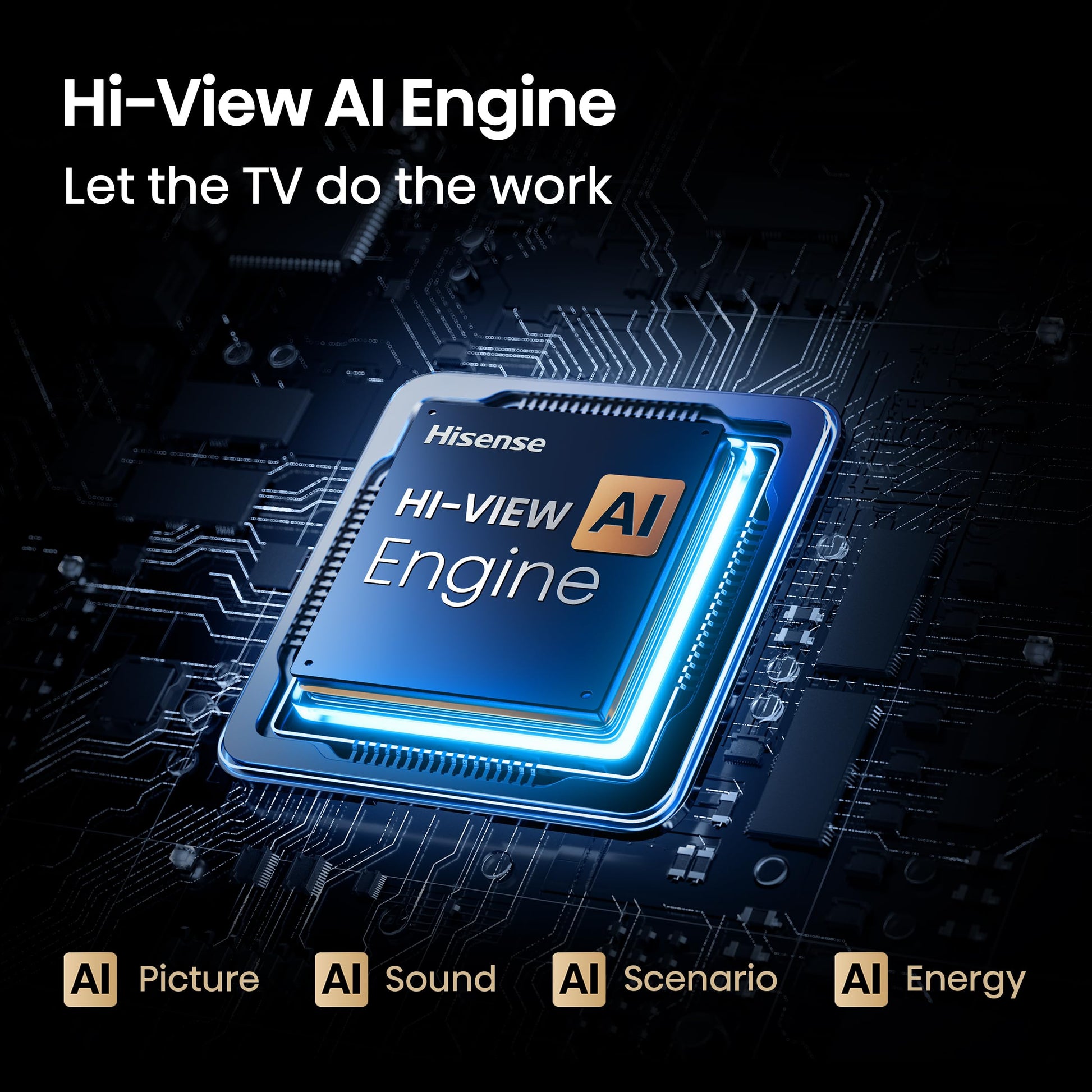 - HI-VIEW AI ENGINE: Feel like you’re in the stands even when you’re watching from your couch. Controlled by a high-powered AI chipset, Hi-View AI Engine uses advanced picture processing, like AI 4K Upscaler, AI Smooth Motion and AI Sports Mode to sharpen and boost the quality of whatever’s on your TV