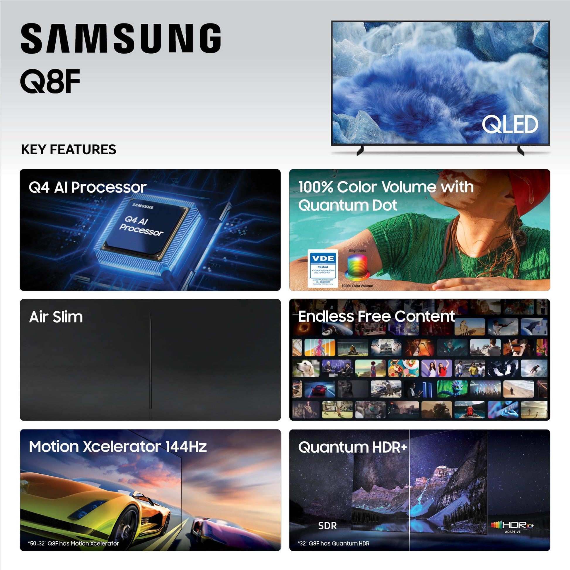 - AI-Enhanced Color & Sound: Enjoy vivid visuals and immersive audio optimized according to your content.