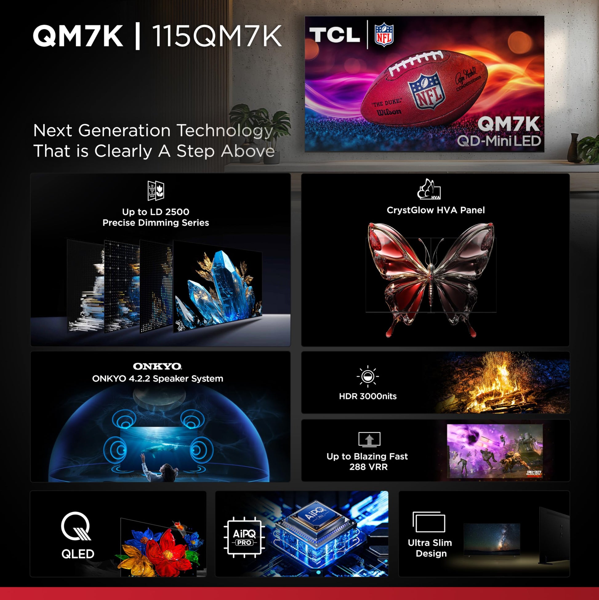 TCL 115" QM7K QD-Mini LED 4K TV | 288Hz, Dolby Vision IQ, Atmos