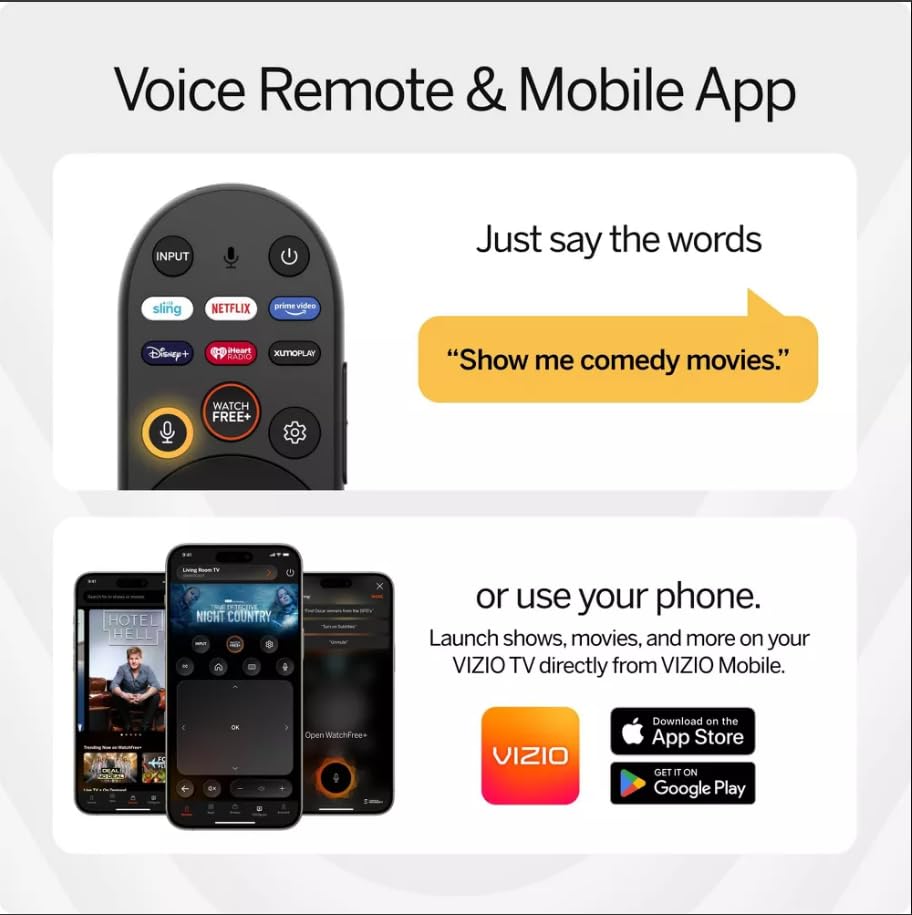 - Smart TV Features with VIZIO Home & WatchFree+: Access a vast library of apps and free content through VIZIO Home and WatchFree+, offering 275+ live channels and 15,000+ on-demand titles.